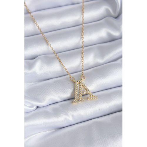 316l Çelik Gold Renk A Harf Model Zirkon Taşlı Kadın Kolye
