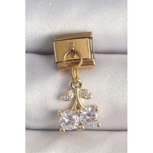 316L Çelik Gold Renk Sallantı Zirkon Taşlı Kiraz Model Nomination Charm