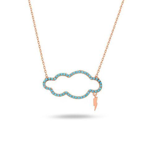 925 Ayar Firuze Taşlı Bulut Şimşek Kadın Gümüş Kolye