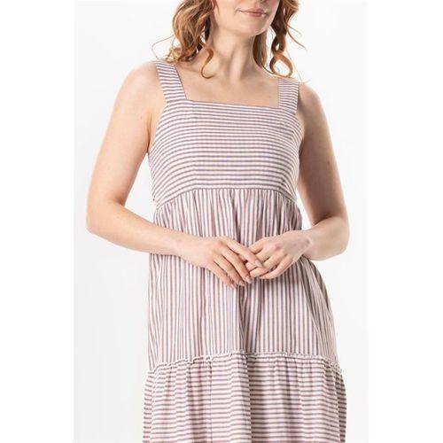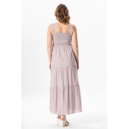 Askılı Şile Bezi Kare Yaka Tılsım Uzun Yazlık Elbise Bordo Çizgili Brdbyz