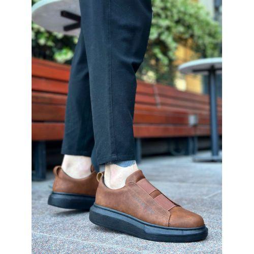 BA0307 BOA Kalın Yüksek Taban Çift Bant Taba Siyah Erkek Ayakkabı
