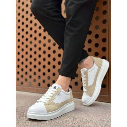 BA0423 BOA Kalın Yüksek Taban Beyaz Krem Bağcıklı Spor Erkek Ayakkabı