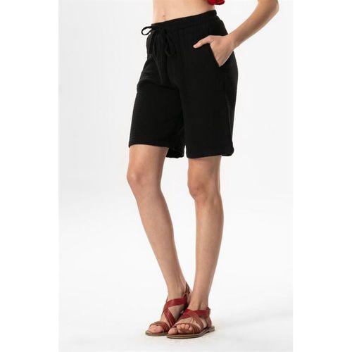 Beli Lastikli Rüzgar Diz Üstü Müslin Yazlık Şort Siyah Syh