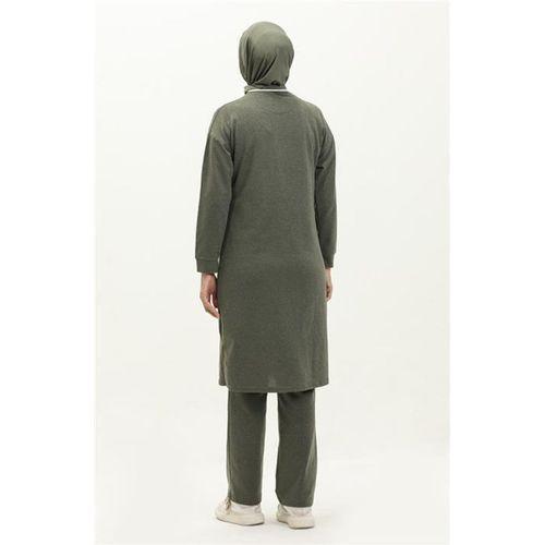 Bisiklet Yaka Fermuarlı Uzun Tunik Sade Basic Spor Takımı - 03044.005 - Haki