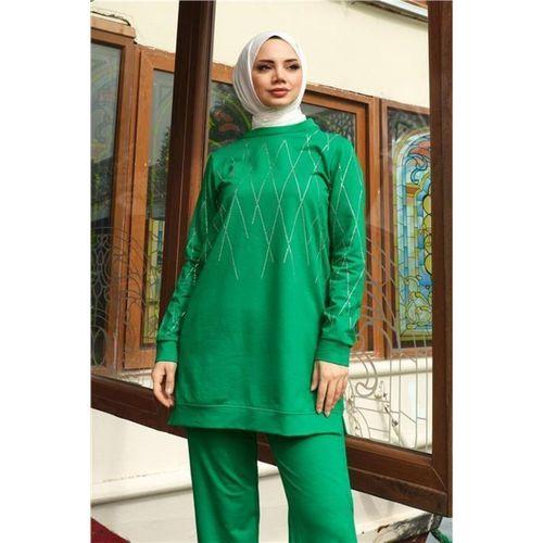 Çarpraz Taş Desenli O Yaka İkili Tesettür Eşofman Takımı - 71185.111 - Benetton Yeşil