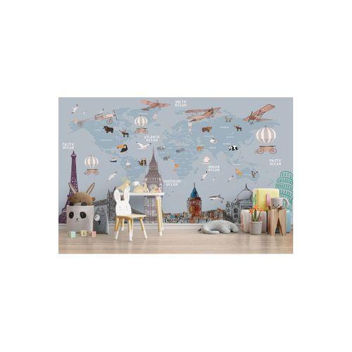 Dünya Haritası Çocuk Ve Bebek Odası Hayvanlar Alemi Duvar Kağıdı-3820