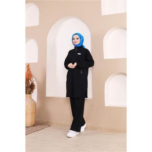 Fermuarlı Cepli Kısa İkili Tesettür Eşofman Takımı - 71182.003 - Siyah