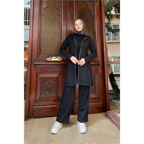 Fermuarlı Kapşonlu İkili Sade Basic Eşofman Spor Takımı - 03052.003 - Siyah