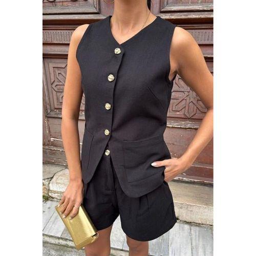 Gold Düğme Detaylı Yelek Şort Cotton Takım 10134-17