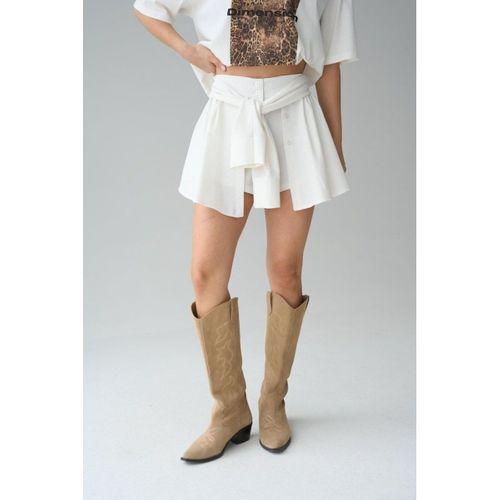 Gömlek Bağlamalı Şort - Krem