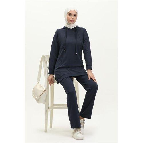 Kapşonlu O Yaka Sade Basic İkili Eşofman Spor Takımı - 03039.015 - Lacivert