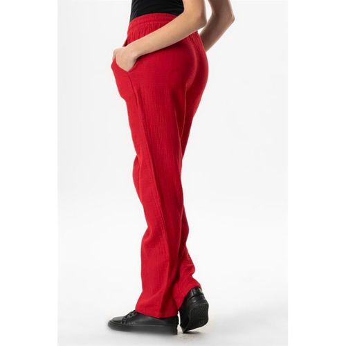 Müslin Beli Bağcıklı Çift Cepli Kadın Yazlık Pantolon Kırmızı Krmz