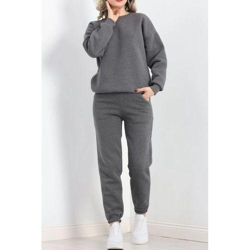 pilelistore 3 İplik Bisiklet Yaka Eşofman Takımı Antrasit