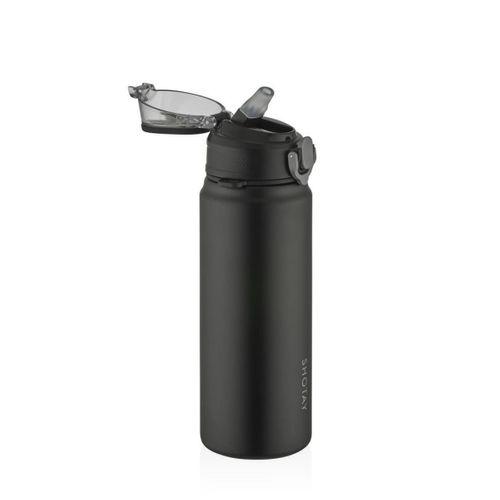 Shotay Çelik Termos Matara Sağlıklı ve Pratik İçim, Yalıtımlı, Kilitli Şeffaf Kapak, Silikon Pipetli, Askılı, 316 Paslanmaz Çelik 750Ml Siyah
