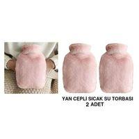Sıcak Su Torbası 2 Adet,Yan Cepli Pembe Peluş Termofor 27X17X2Cm 750Ml