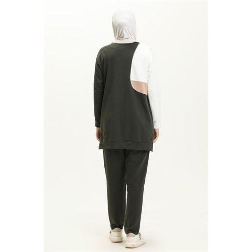 Sıfır Yandan Cep Detaylı Ribanalı İkili Eşofman Spor Takımı - 70086.005 - Haki