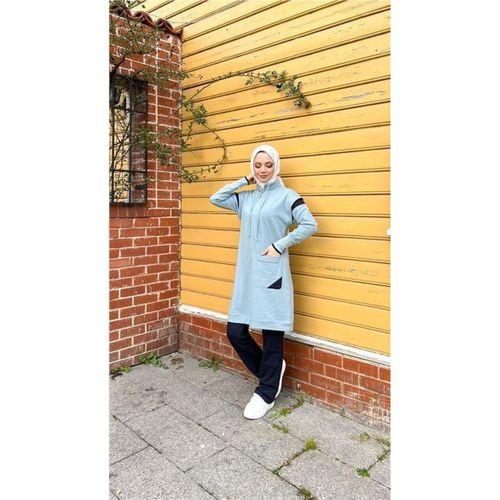 Tek Cepli Yarım Fermuarlı Sweat Pantolon İkili Tesettür Eşofman Takımı - 71178.112 - Buz Mavisi
