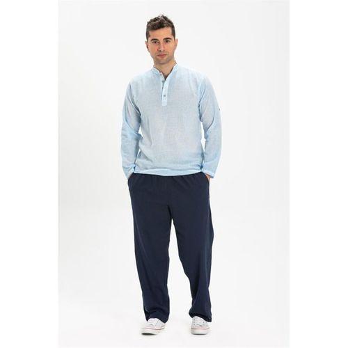 Uzun Kol Şantuklu Pamuk Bodrum Erkek Yazlık Tshirt Buz Mavi 9012