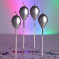 YÜKSEK KALİTE 4 ADET PARLAK METALİK BALONLU GÜMÜŞ MUM GÜMÜŞ BALONLU PASTA MUMU DOĞUM GÜNÜ MUMU 15 CM
