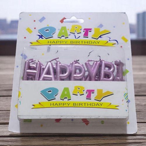 - PEMBE HAPPY BIRTHDAY PARLAK METALİK PASTA MUMU