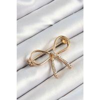 Zirkon Taş Detaylı 3D Fiyonk Figürlü Gold Renk Kadın Broş