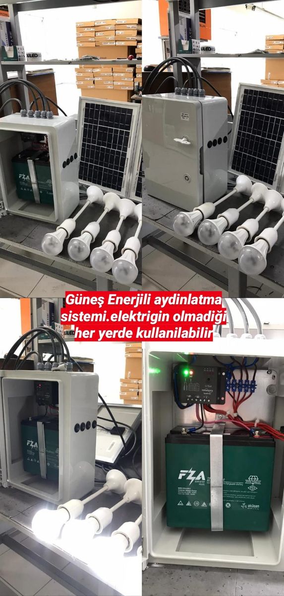 22ah akü 20 watt panel 10a şarz reglatörü 4 adet 3w ampül