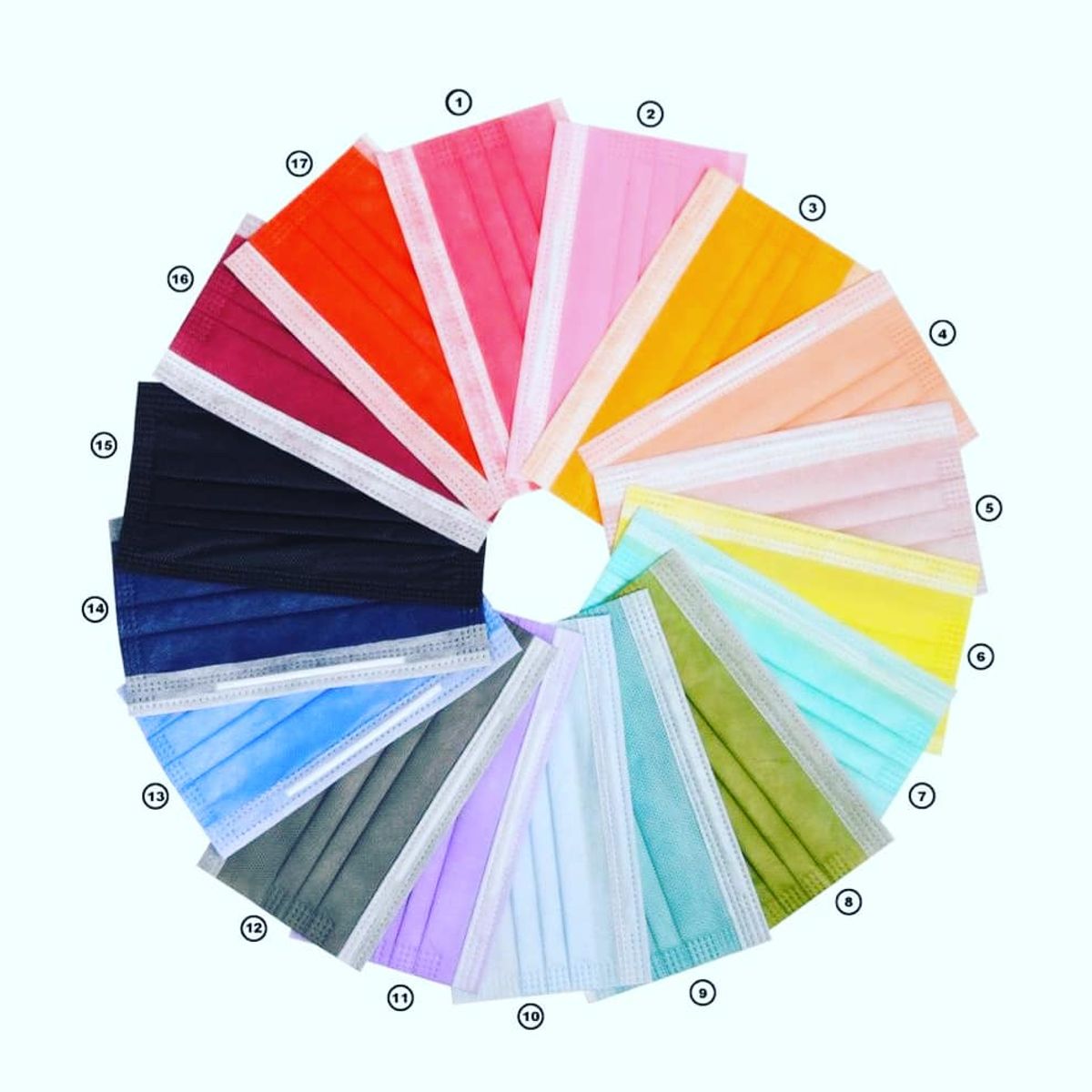 BAZARGAH 1 PAKETTE TOPLAM 10 TANE AYNI RENK MASKE BULUNMAKTADIR. FARKLI RENKLERDE 10 PAKET ŞEKLİNDE TOPLAM 100 ADET MASKE GÖNDERİLCEKTİR.
